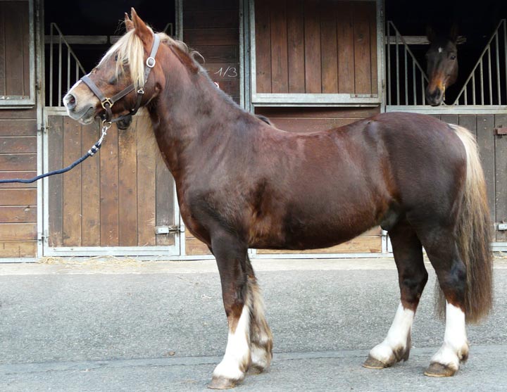 Abercippyn, hongre Welsh, alezan brulé, à peine 1,40 m, solidement charpenté,